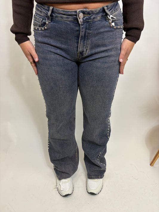 SUPER STRETCH LOW WAIST PEARLS WIDE LEG JEANS BLAUW 1518