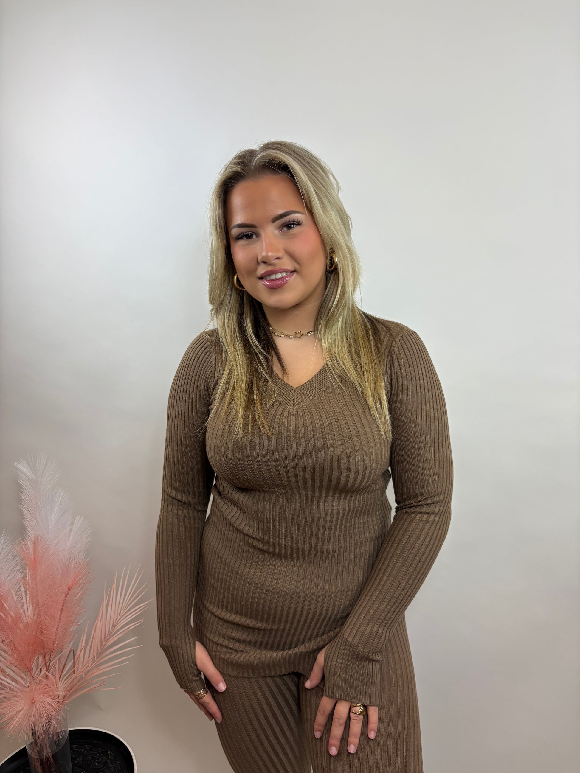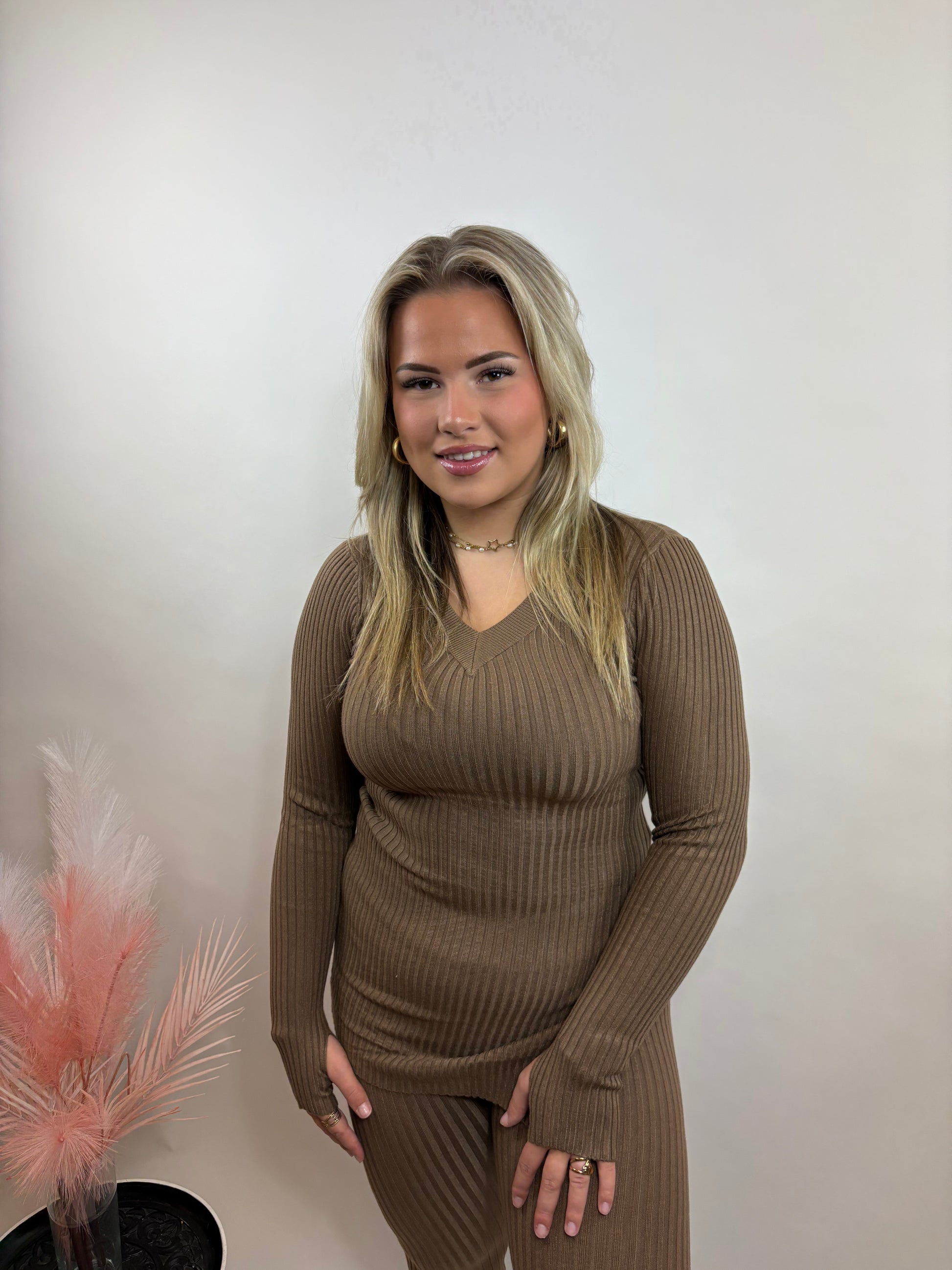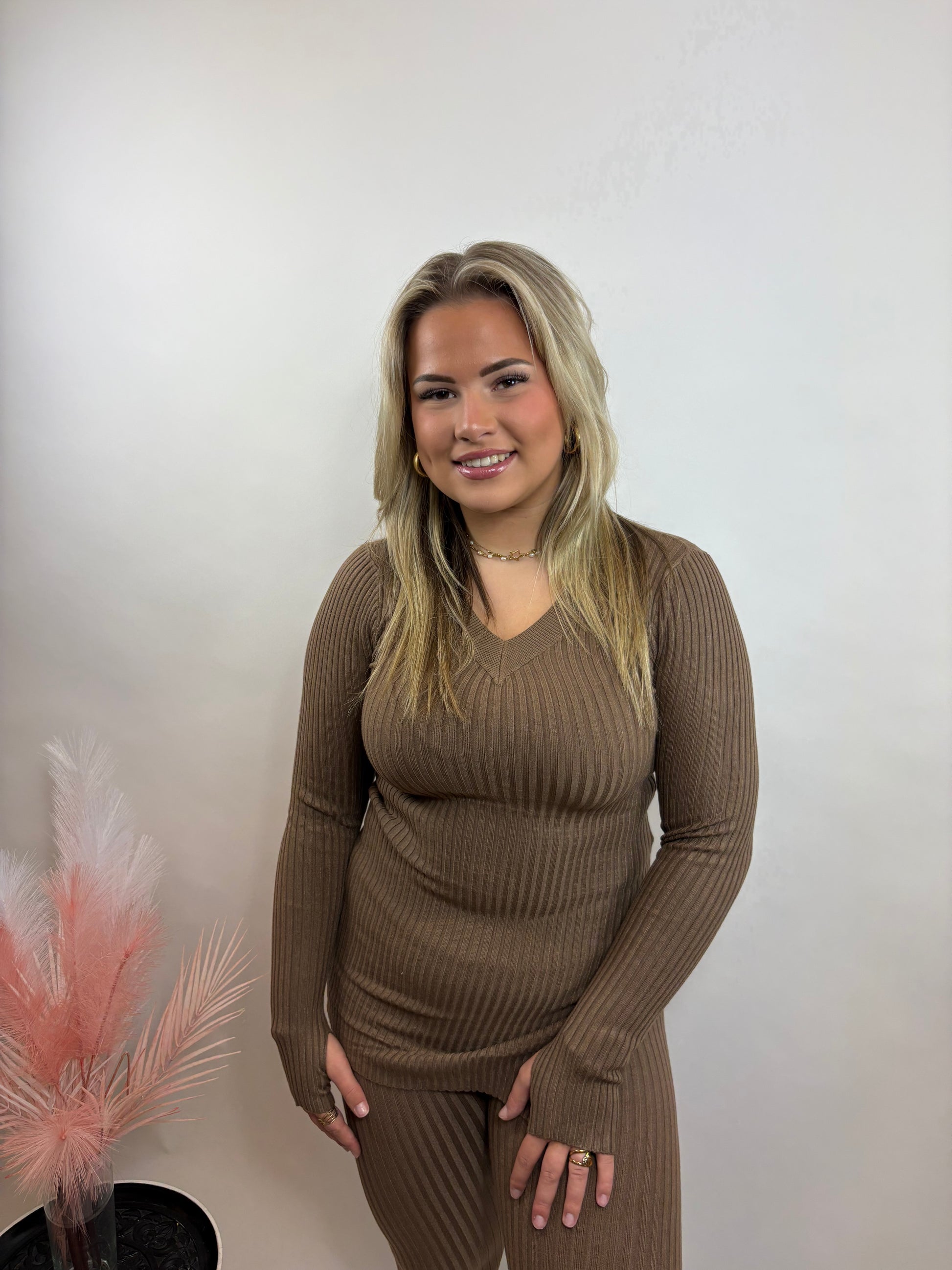 Deze comfy rib set is gemaakt van een zachte, elastische ribstof die mooi aansluit op het lichaam. Perfect voor een dagje thuis, maar ook heerlijk stylish voor onderweg. Combineer het met sneakers of laarsjes en je bent ready to go!