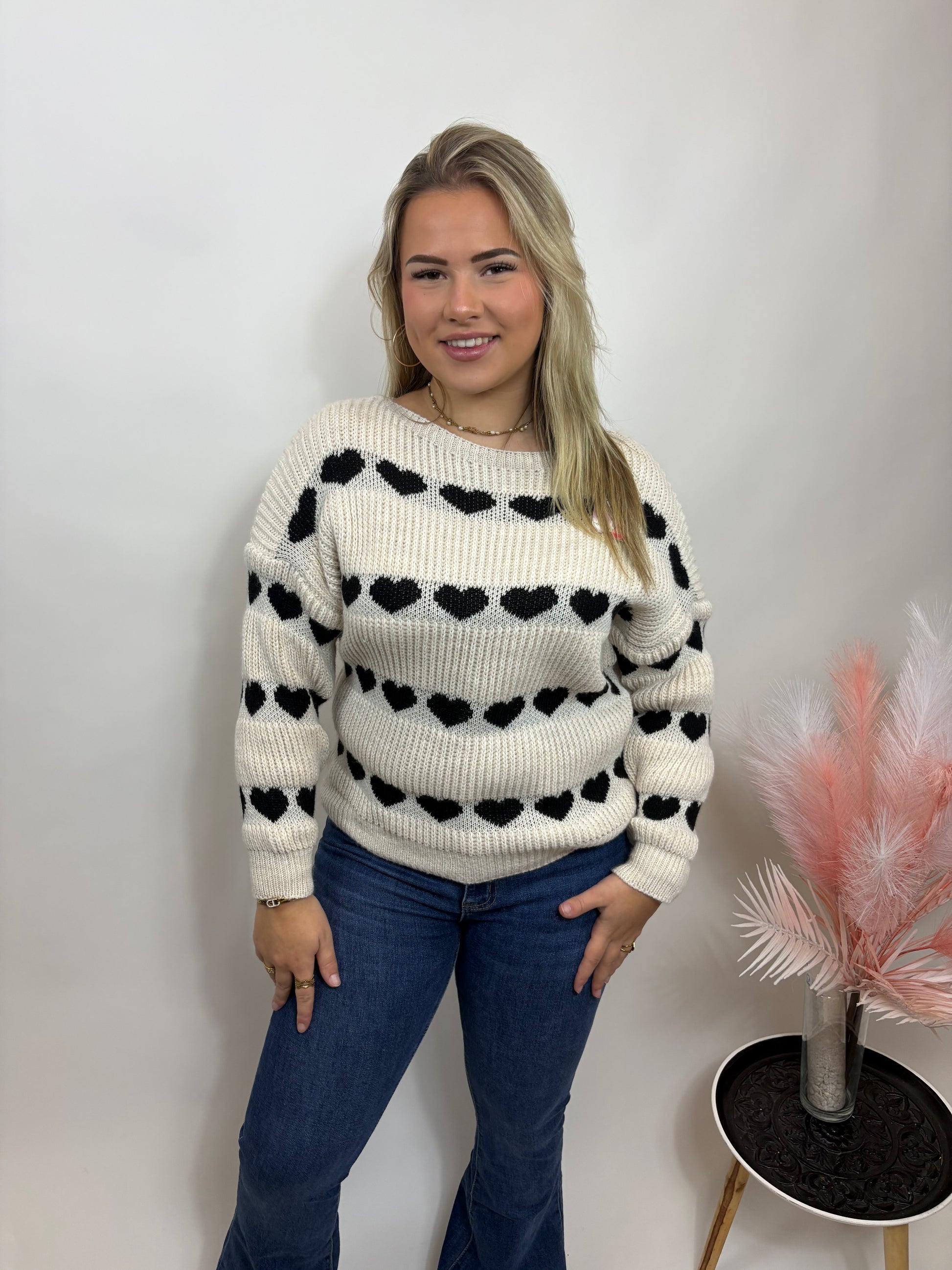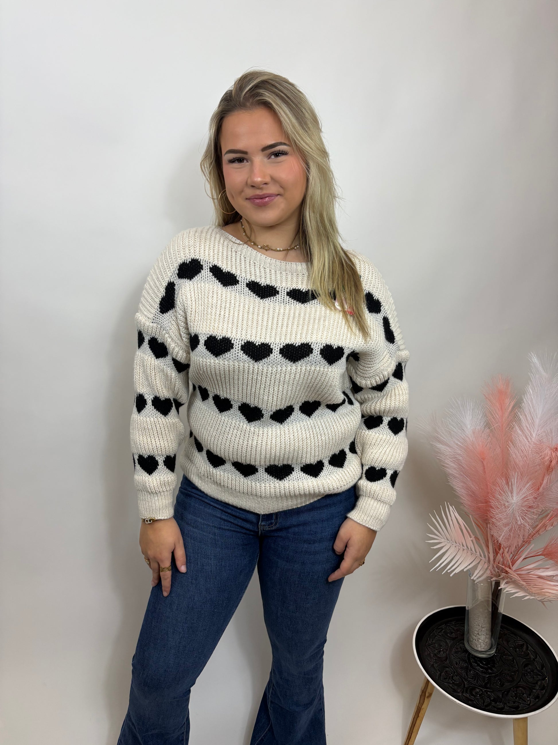 Deze knit brengt instant vrolijkheid in je outfit. De hartjes geven een speelse en lieve touch, terwijl de stof je warm en comfy houdt. Perfect voor een casual look met flair — of gewoon omdat je zin hebt in een beetje extra liefde in je outfit ✨