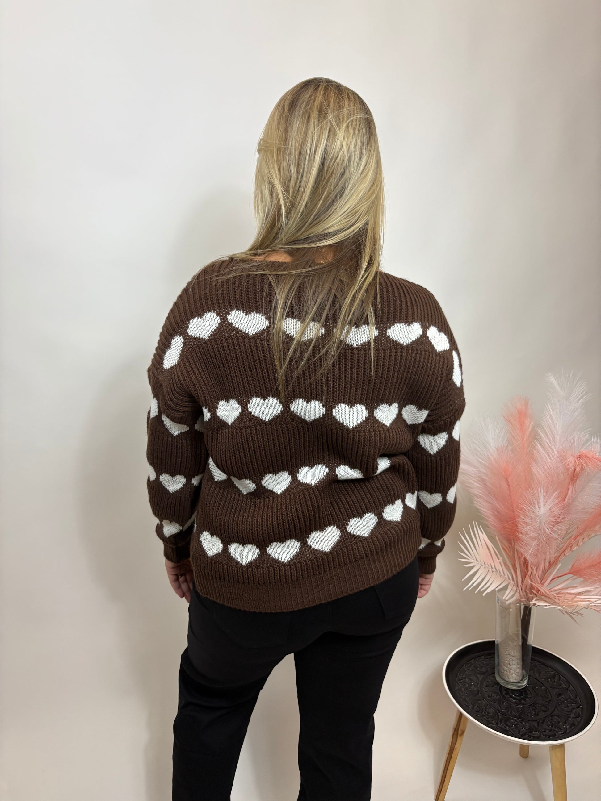 Deze knit brengt instant vrolijkheid in je outfit. De hartjes geven een speelse en lieve touch, terwijl de stof je warm en comfy houdt. Perfect voor een casual look met flair — of gewoon omdat je zin hebt in een beetje extra liefde in je outfit ✨