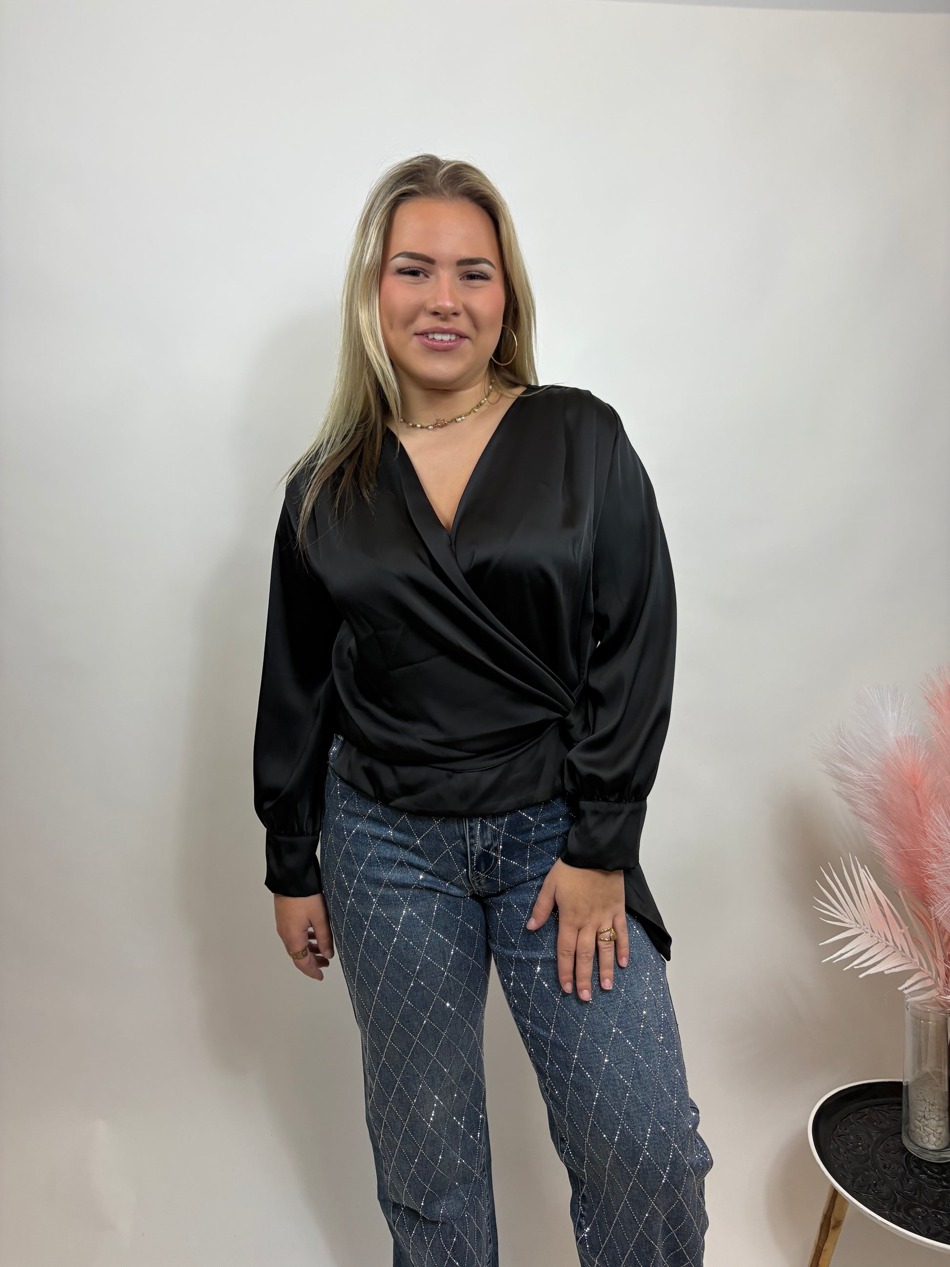 SILKY WRAP BLOUSE MET STRIKDETAIL ZWART 139201